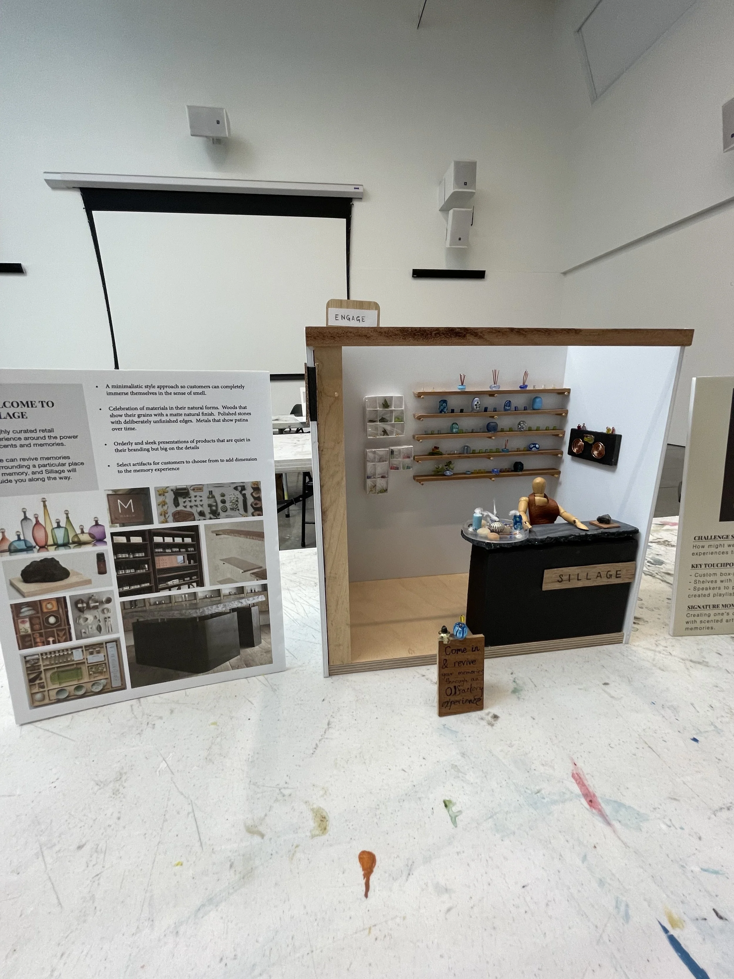 Students built branded phygital pop-up experiences as their final project, receiving feedback from guest critics in design, brand, and retail. Projects ranged from zero-waste fashion to AI-enhanced wellness—each grounded in human-centered research and designed to explore what retail could look like in the near future.